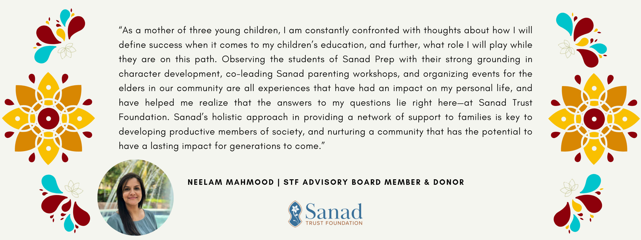 In its simplest form, the work of the Foundation is to preserve love so that illuminated hearts can enlighten the world until our last days. Sanad Trust does this by creating a one-of-a-kind learning model that does not compromise academic expectations, excellence, or achievement. Nor does it cut off school-aged children from their right to realize their spiritual potential. Sanad Prep is the world's first soul-centered, accredited, blended, full-time, K-12 education center of its kind and has been recognized not only for its academic excellence, but also its healthy social, emotional, and spiritual learning environment. We do this further by serving the entirety of a family and community’s holistic needs offering innovative wellness and community programs that address the mental, emotional, spiritual, and social needs of youth, adults, and elders.